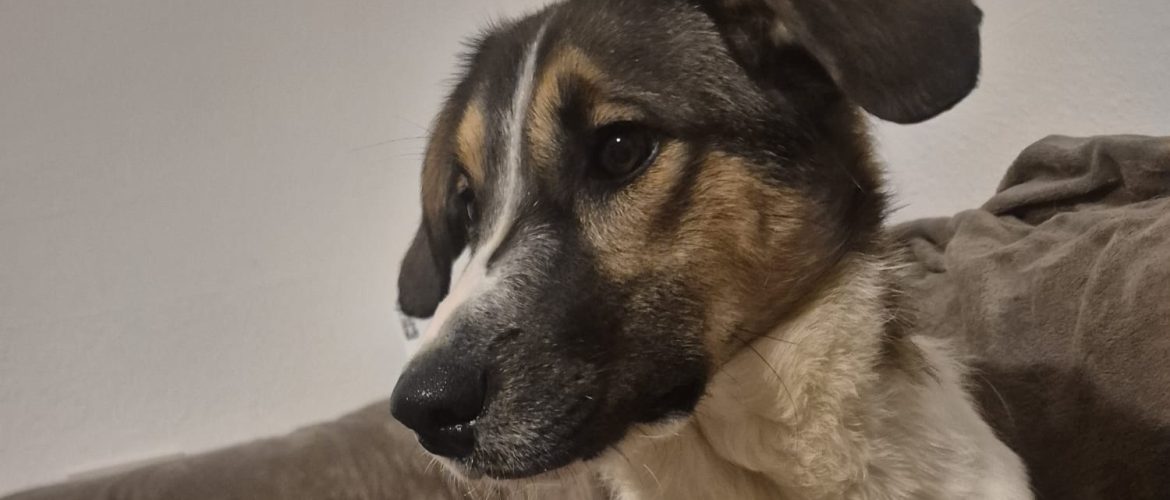 Freya ist vor kurzem auf einer Pflegestelle angekommen. Anfangs war sie etwas schüchtern und schreckhaft, fasst aber immer mehr Vertrauen, zu ihrem Pflegefrauchen mehr als zum Pflegeherrchen.