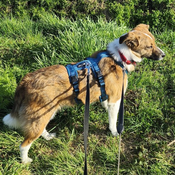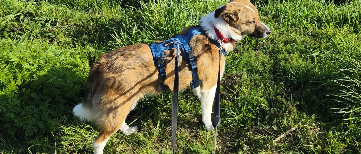 Nelly ist ca. ein Jahr und vermutlich ausgewachsen. Sie ist neugierig und meistens lernwillig. Sie geht gerne spazieren, die Leinenführigkeit muss noch weiter trainiert werden.