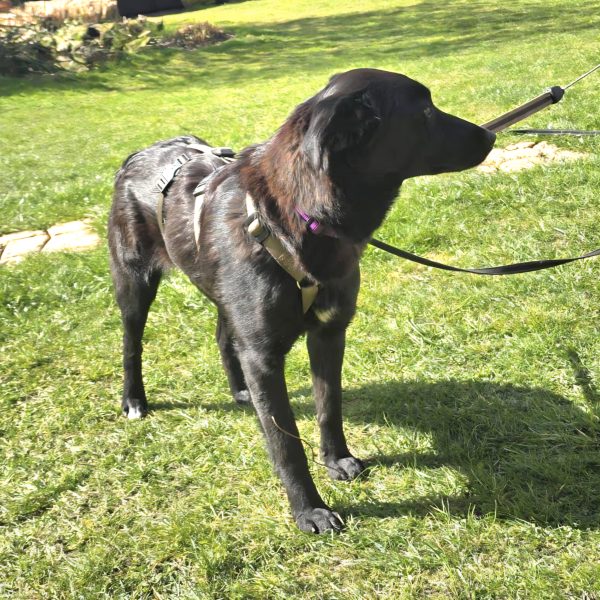 Biene ist noch jung und muss noch viel kennenlernen. Bei fremden oder lauten Geräuschen und hektischen Bewegungen ist sie noch schreckhaft. Bei Hundebegegnungen reagiert sie neugierig und immer freundlich. Die Leinenführigkeit muss noch weiter trainiert werden.